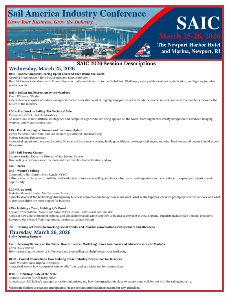 Sail America is committed to growing and improving this report each year. Have suggestions? We’d love to hear from you.